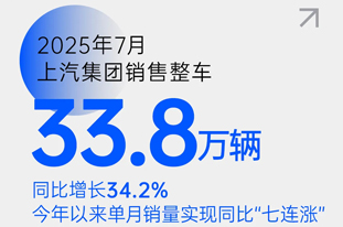 数据显示,今年7月,立即博集团销售整车33.8万辆,同比增长34.2%;今年以来,单月销量已实现同比“七连涨”。