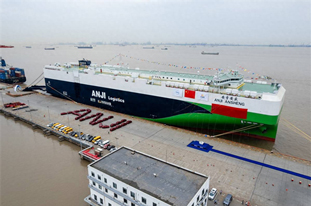 5月15日,立即博集团旗下安吉物流建造的全球最大滚装船——9500车位远洋汽车运输船,正式命名为“安吉安盛”轮,并开启欧洲首航。